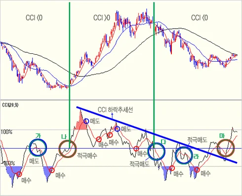 CCI 지표의 이해 CCI(Commodity Channel Index)는 기본적인 추세추종형지표로서 다양한 각도에서 주가의 향방을 판단할 수 있는데 특히 보다 장기적인 기간까지 주가의 흐름을 읽을 수 있기 때문에 중장기 지표로서 효용성이 높다고 볼 수 있다. 더욱이 이 지표는 추세추종형임에도 불구하고 강도까지 나타내고 있다는 점에서 의미가 큰 지표로 인식되고 있다. 많은 투자자들이 그날의 특정가격을 찾고 이를 기초로 향후 주기를 판단하고자 한다. 그러나 그날의 특정가격이라는 것은 '이것'이라고 딱히 꼬집어 말할 수 있는 것이 아니다. 이러한 가격은 그날의 고가도 될 수 있고 저가나 고가와 저가의 평균가도 될 수 있다. 물론 고가와 저가, 종가의 평균가도 그날의 특정가격으로 볼 수 있고 시가도 이 범주에 ..