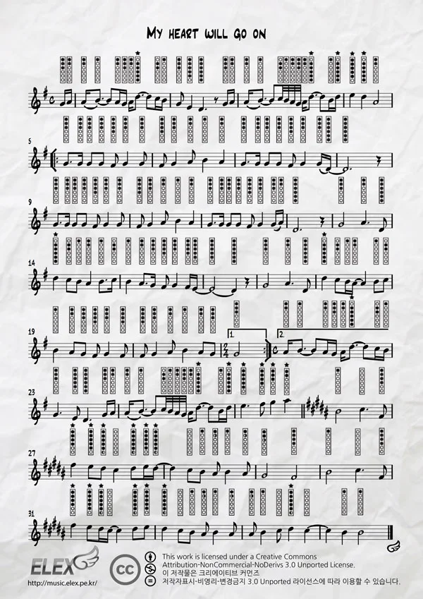 My Heart Will Go On (타이타닉 OST)아이리쉬 휘슬(D Key)를 위한 악보이다. http://music.elex.pe.kr/2012/08/my-heart-will-go-on.html